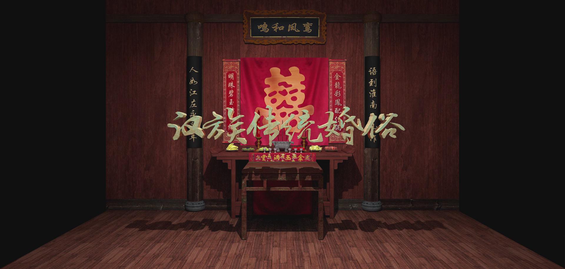 漢族先人認為黃昏是吉時,所以會在黃昏行娶妻之禮,因此夫妻結合的禮儀稱為“昏禮”,后來演化為婚禮。漢族人認為紅是吉祥的象征,所以傳統婚禮習俗總以大紅色烘托著喜慶、熱烈的氣氛。吉祥、祝福、孝敬成為婚禮上的主旨,幾乎婚禮中的每一項禮儀都滲透著中國人的哲學思想。影片描述了漢族傳統婚俗拜堂過程,先是燃炮后是拜堂,體現了中國傳統文化的精髓。